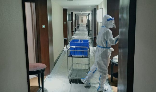 任务紧,工作重,酒店工作人员每日轮流值岗,为隔离人员传递物资、配送餐食、清收垃圾等各项工作不停歇,累了就席地小憩,缓冲体力后,再次争分夺秒与疫情“赛跑”,时刻坚守在疫情防控第一线。