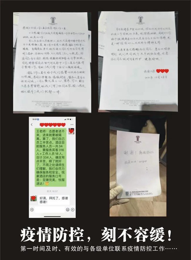 隔离人员给酒店防疫工作人员所写的感谢信。西部集团悦豪酒店供图 据介绍,西安悦豪酒店、铜川悦豪酒店、青峰峡悦豪酒店主要负责封控区的核酸检测组织、门岗管控、人员摸查、消杀处理、物资配送、垃圾清运等一系列工作。截至目前已***隔离人员共1100余人。